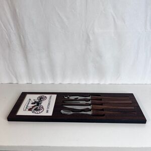 VTG 4 Piece Bar Ware Tool Set Hanging Magnetic Mid Century Modern Wood Tile