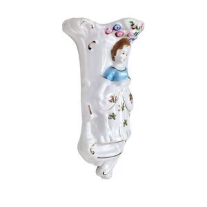 keywords: Vintage, Victorian, Porcelain, romantic, ceramic, figurine, wall art, wall hanging, flowers, woman, wall vase, vase, candles, candle holder, fancy, rare, hard to find, planter, vintage planter, Victorian planter, lady planter, lady vase, gold trim, hand painted, hanging,
