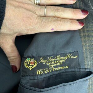 This vintage Hickey Freeman blazer is a stunning addition to any wardrobe. Made with high-quality Tasmanian wool and lined with cupro, this blazer is perfect for any occasion, whether it be a wedding, party, or business event. The brown plaid pattern adds a touch of classic American style, while the notch lapel and three-button sleeve button style provide a elegant and refined look.