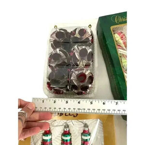 VTG 5 Boxes Christmas Ornaments Apples Foil Commodore Imported Candy Stripes
