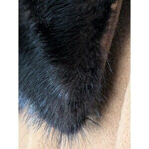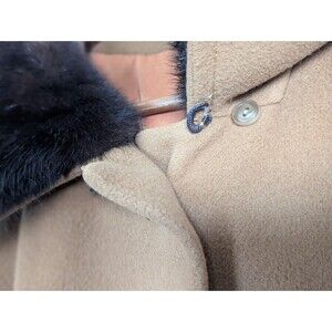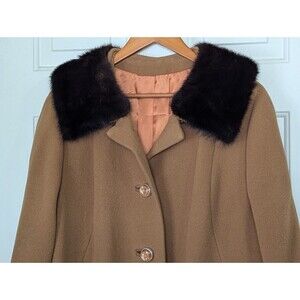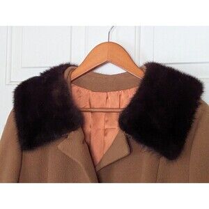 VTG 50s Chinese Cashmere Long Coat Fur Collar Womens XL Carmel Brown USA Made
