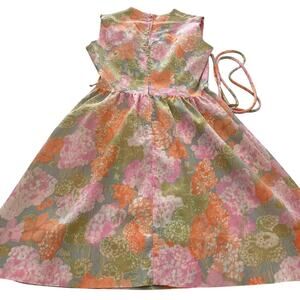 VTG 50s Joan Curtis Floral Polyester Dress size 14 Sleeveless Union Tag USA