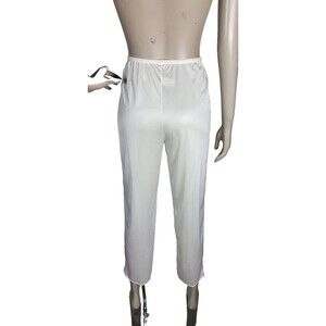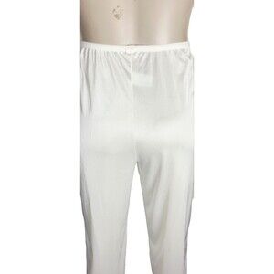 The vintage 50s/60s Vassarette "Underneath It All" ivory silky nylon pant slip/pajama pantsrare in modern size small (marked size 5/70) can also fits size XS and medium, is a classic piece of women's vintage clothing. Made of luxurious sateen nylon material in an ivory color, perfect for adding a touch of elegance to your lingerie collection. With the trusted Vassarette brand and a size small fit, this pant slip/pajama pant is a timeless piece that exudes sophistication and style. Lace trim on hem, elastic waistband, new, never worn,