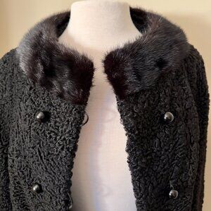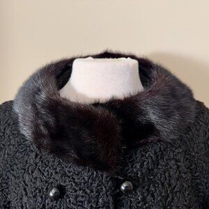 VTG 50s/60s Winter Black Lambswool 3/4 Sleeve Jacket Coat Fur Collar Small/Med