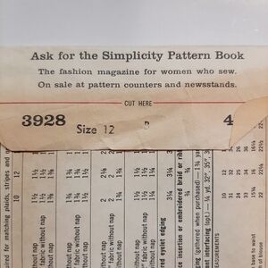 VTG 60 's SIMPLICITY BLOUSE PATTERN # 3928
