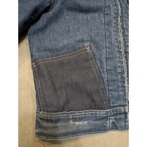 The VTG 60s 70s Lee Denim Jean Jacket 91B 36R is a vintage quilted work jacket made of cotton denim with a polyester lining. It features a teardrop talon zipper, zippered front, corduroy collar, and adjustable waist. This short-length jacket is perfect for travel, casual wear, or workwear during the winter, fall, or spring seasons. With its retro design and utility theme, this Lee jacket is a stylish and functional addition to any wardrobe, ideal for those who appreciate vintage workwear and gorpcore style.