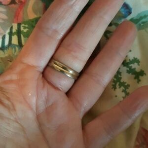 Great piece from the late sixties or early 70's with an adjustable band. Interesting design with no missing stones. Some tarnish to band which is not visible when worn.Goldtone