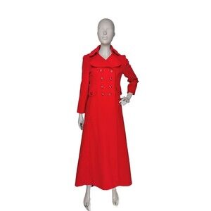 VTG 60s 70s Edwardian Gothic Red Wool Double-Breasted Long Swing Coat XS/S/M