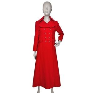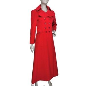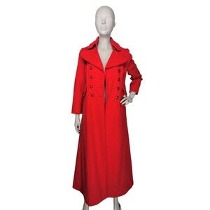 Gorgeous vintage 60's/70's red wool double breasted ankle length swing coat, faux flip pocket, has slant pockets at the waist, fully lined, XL notched collar, no size/material tag fits like a modern XS/S/M depending on your measurements and desired fit.