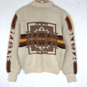 VTG 60s 70s Geometric Intarsia Knit Southwestern Aztec Sweater Sz Med Wintuck