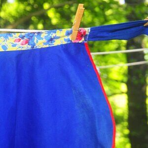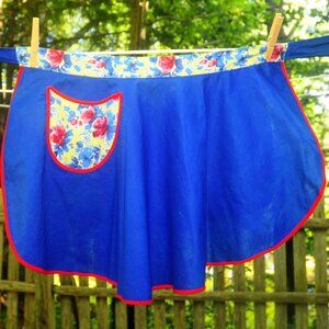 VTG 60s 70s REVERSIBLE Fancy Bright Floral Print Hostess Apron Semi-Circle Shape