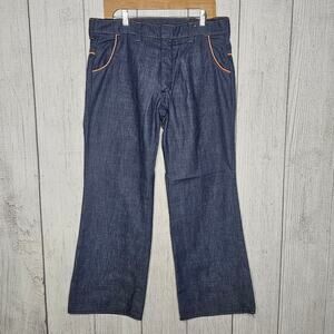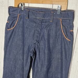 VTG Unbranded Blue Chambray & Orange Piping Wide Leg Pants, 34x30