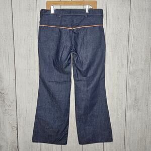 VTG 60s 70s Unbranded Blue Chambray & Orange Piping Wide Leg Pants, 34x30