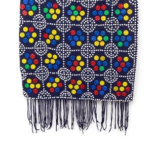 Primary Colors button and beaded fringe hip bag from the 1960s. True vintage.
