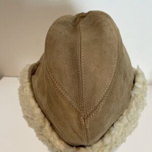 VTG 60s Deerskin Trading Post Suede Shearling Cloche Trilby Hat Union Made Sz M