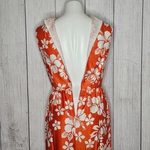 VTG 60s Elfriede for Mitch Robert Orange & White Hawaiian Hibiscus Floral Dress