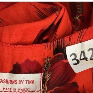 Vintage 1960s Fashions by Tina Red Hawaiian Muumuu Hibiscus Floral Midi Dress Women Size S/M