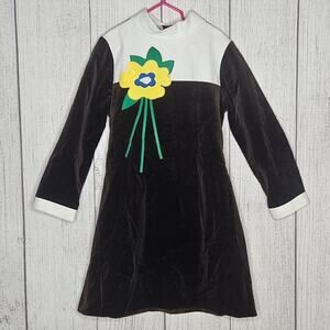 VTG 60s Florence Eiseman for Saks Fifth Avenue Brown Velvet Dress w Flower, sz 8