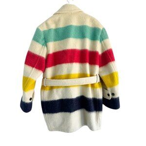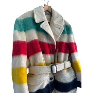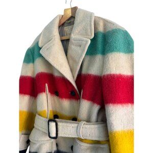 VTG 60s Hudsons Bay Wool Striped Point Button Up Belted Blanket Coat Men’s Sz XL