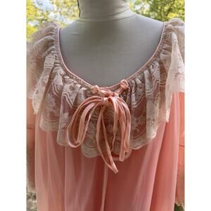 VTG 60’s INTIME Peachy Pink Peignoir Lace Nightgown & Robe 17”
