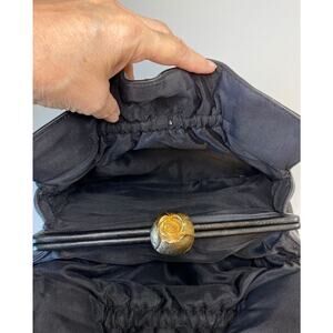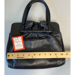 VTG Ingber & Co. Black Cabretta Leather Handbag Gold Rose Clasp Made USA