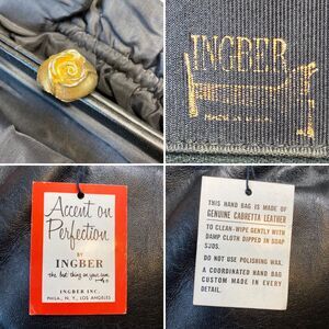 VTG 60s Ingber & Co. Black Cabretta Leather Handbag Gold Rose Clasp Retro USA