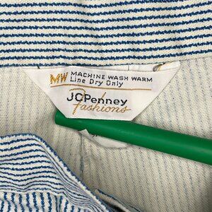 Adorable striped light blue and white vintage 1960s junior suit set with jacket and pants. All in excellent condition with a few minor flaws; both armpits have a small section that needs to be stitched and the left side of the collar on the jacket at the top seems slightly faded but I didn't notice it until I started taking pictures. Suit has all original buttons, pants have a metal zipper that works perfectly. This is a Junior size 9/10 Medium, but vintage sizing is not the same as today. Machine wash warm and line dry or lie flat to air dry and made with 100% cotton. This is really a sharp outfit! The pictures don't do it justice. For reference, it fits me barely and I'm 5'4" and almost 120lbs. So for someone a little smaller, it would be a perfect fit! Please see measurements below for accurate sizing and thank you for stopping by Lucy and Ethel's Vanity!