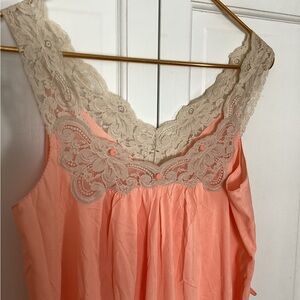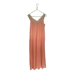 VTG 60s KAYSER LIGHT Coral PINK/PEACH Lace NIGHTGOWN L