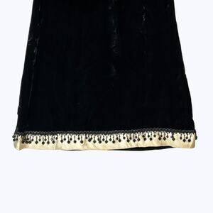 - Condition: Good vintage condition. Zipper works well. Water drop stain on the velvet near the neckline hides well in the fabric. Some markings on the ivory material including one pink mark on the sleeve. A couple of missing beads on the back of the right sleeve shown.