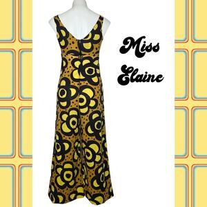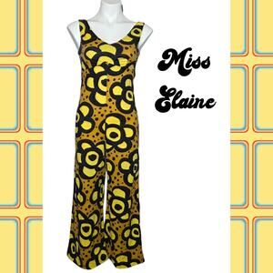 VTG 60s Miss Elaine Psychedelic Groovy Yellow Black Mod Floral Wide Leg Jumpsuit