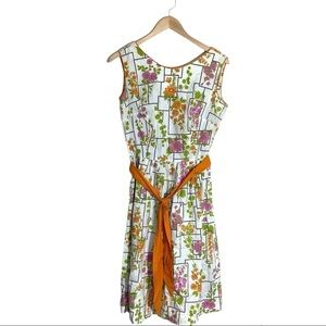 VTG 60’s Mode O’Day Orange Belted Waist Floral Dress USA Cottagecore Boho