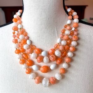 All three in good vintage condition. Peach necklace has tarnish on the hook fastener
