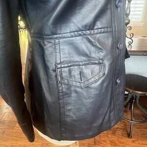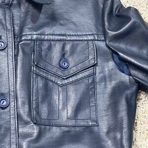 VTG 60's Penney's International Imports Vegan Leather Jacket Navy Blue Size 14 S
