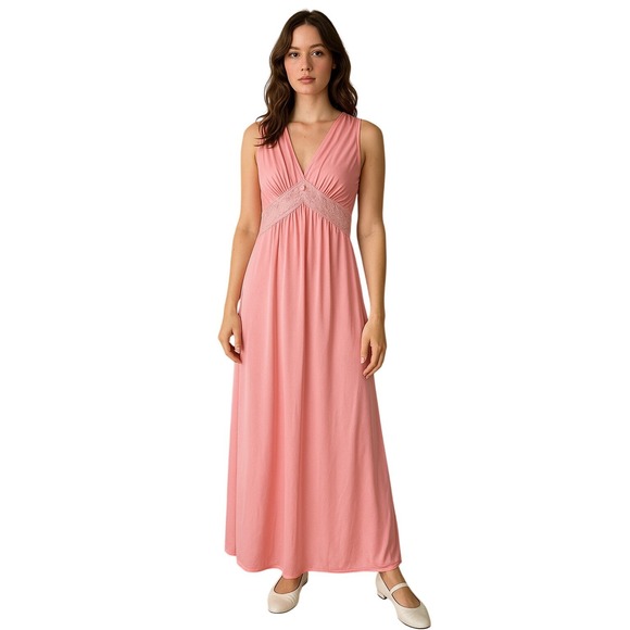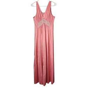 VTG 60's Pink Nylon Nightgown Lace Empire Waist Romantic Old Hollywood Coquette