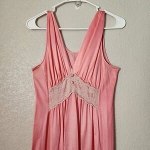 Up for consideration is a preowned vintage pink nylon nightgown. This garment is in great condition with lots of life left. Size not listed; please refer to measurements for best fit.