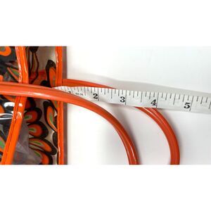 The bag has double handles in an eye-catching orange color and the clear vinyl exterior material is easy to clean, making it a practical choice.