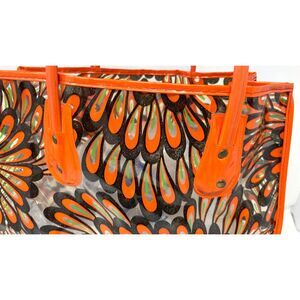 VTG 60s Plastic Reusable Shopping Tote Bag Clear Floral / Psychedelic graphic pattern