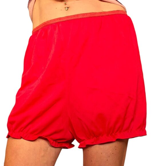 VTG 60s Red Nylon Bloomers Briefs Pinup Sissy Size M Ruffle Leg Lingerie Shorts