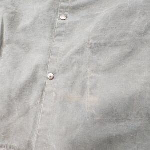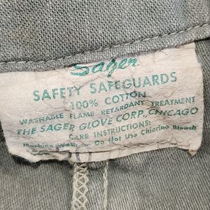 Selling Vintage 1960s? VTG 60s Sager Safety Safeguards Glove Corp Mens 50 Snap Up Cotton Work Shirt. It is rusty, Stained, and distressed (See Photos). Color is a greenish blueish. You can see the condition from the photos. You can get further information from looking at what is shown in the photos. Pricing low to sell fast. I offer combined shipping on multiple purchases. All purchases should arrive within 2 to 9 days. International buyers should expect longer shipping time. If there are any issues please do the right thing and message me before leaving feedback.