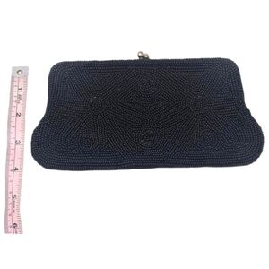 VTG 60s Silk Beaded Richere Bag by Walborg Clutch Hand Made in Japan Black