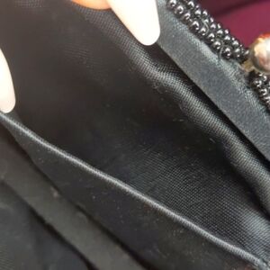 Color: The beads create a shimmering effecti classic black. Black Satin Interior and small Pocket