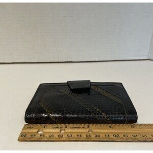 VTG 60s St Thomas Cowhide Leather Wallet Coin Purse Kiss Lock Black Reptile