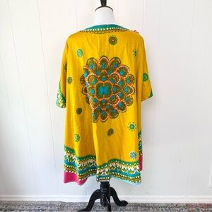 VTG 60s Top Cape Hippie Yellow Hawaiian Cotton Tunic Boho One Size Handmade