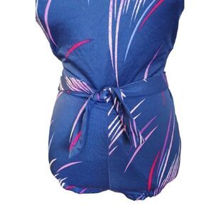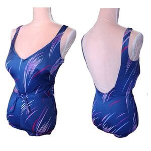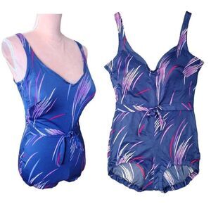 VTG 60s USA Rose Marie Reid Blue Purple One Piece Swimsuit Plussize 14
