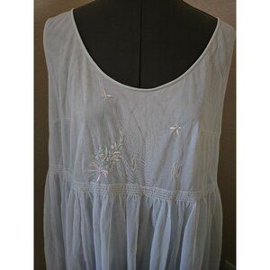 VTG 60s Vassarette Hollywood Baby Blue Embroidered Empire Waist Nightgown Demure