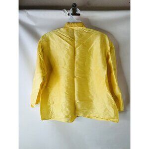 VTG 60s Womens Medium Dainty Silk Loop Collar Button Shirt Blouse Yellow Mod