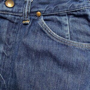 Awesome Wrangler vintage 1960s mini jean skirt with raw hem. Snap closure. There is a small area of rust by the snap on the inside of skirt- see pic. This is a Misses size 11-12. I would say it’s a modern Small 2-4. Measurements are listed below. Compare it with something you own. Made in the USA.