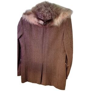 VTG 60s/70s Becca Wool Tweed Jacket Large Brown Coat with Fur Collar