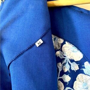 Beautiful kaftan in great condition. Unsure of what fabric content is, but it’s slightly stiff, almost linen like. Long. Measures 21” armpit to armpit, 24” across hips, 58” long. Zips up back and hooks at neck. Minor pulled threads at back by hook closure.