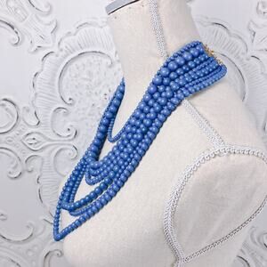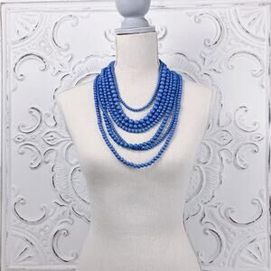 VTG 7 Strand Necklace Bold Retro Boho Blue Acrylic Beads Chunky Statement